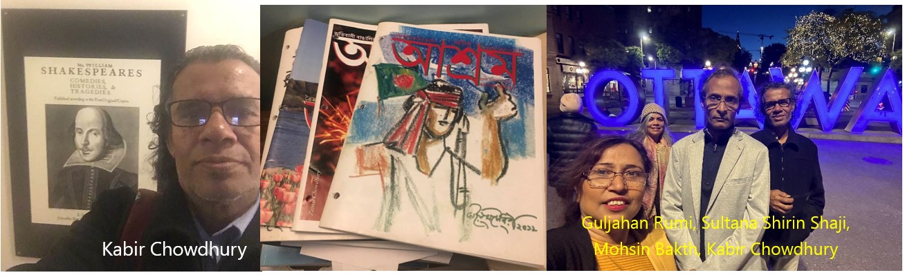Both the editor, Sultana Shirin Shazi, herself a renowned writer, and Kabir, the founder of the magazine, are on the same page with regard to the challenges ahead. With them, there is Mohsin Bakht, himself an acclaimed writer, essayist, song writer well-known among Bangladeshis to advise the editor. Fortunately, Mohsin Bakht is not alone in his endeavour. Guljahan Rumi, his wife and constant companion, is a vibrant member of the community in the Ottawa area. She is there 24/7 to assist the team continually. All of them see the ASHRAM as a platform for emerging Bengali writers regardless of their place of residence. It is their hope that the ASHRAM will provide them with a platform for showcasing the work of their contributors by offering a space for new voices to be heard and recognized, helping them gain much-needed exposure.